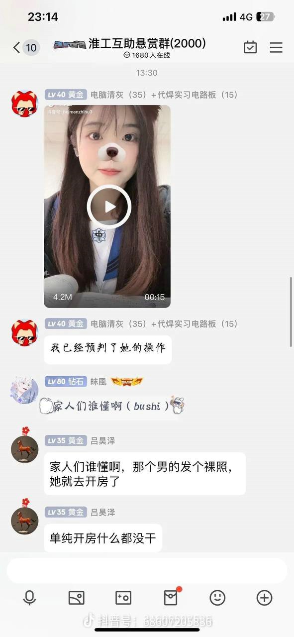 男主在外务工供女友上大学,女友胡文惠却出轨同校大四体育生孟熙 ,只因孟熙给她发了一则打飞机的视频,于是欣然前往酒店开房出轨!孟熙从此被人惯称 “飞机哥”。
