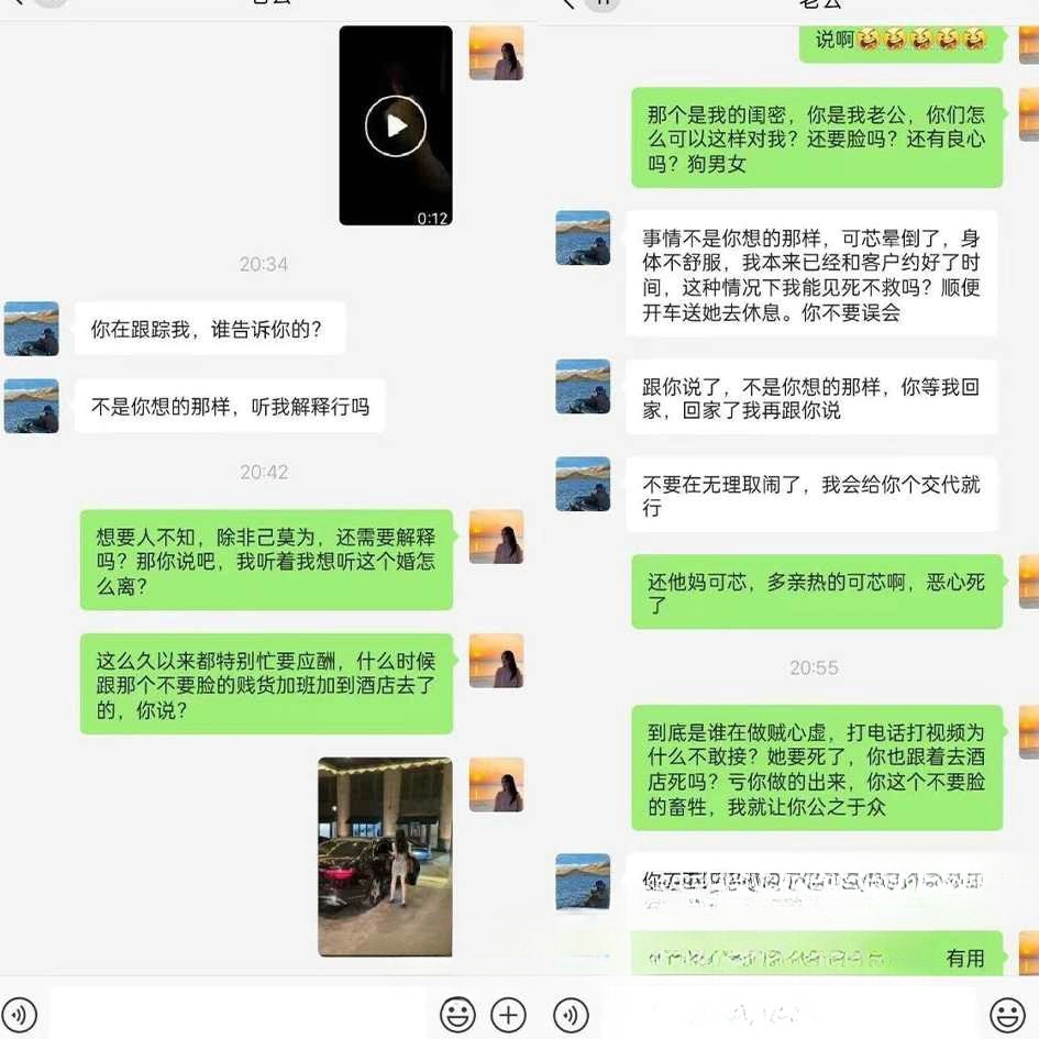 多年夫妻抵不过一夜情 老公出轨自己闺蜜【张可芯】聊天记录 出轨视频被原配曝光