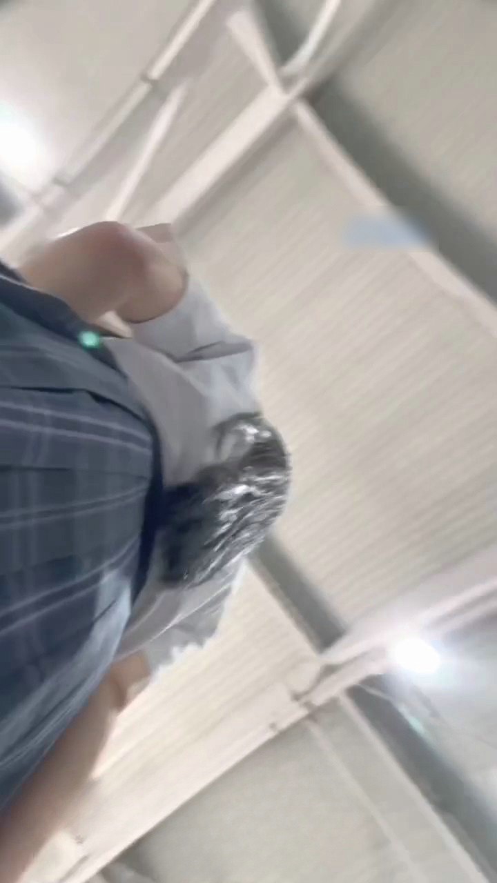 在商场偶遇jk眼镜妹 超短裙还一直捂裙子 但是挡不住性感内外露 蓝色内裤